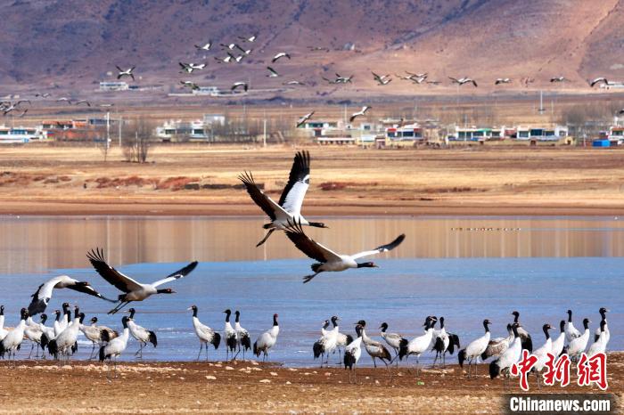 黑頸鶴是中國國家一級保護(hù)動物,是唯一生活、繁殖在高原的鶴類,被藏族民眾譽(yù)為“神鳥”。拉薩市林周縣、墨竹工卡縣等拉薩河流域是黑頸鶴的主要越冬地之一。近年來,西藏自治區(qū)多措并舉實(shí)施生態(tài)建設(shè)工程,黑頸鶴數(shù)量逐年遞增,目前西藏黑頸鶴數(shù)量超過萬只。