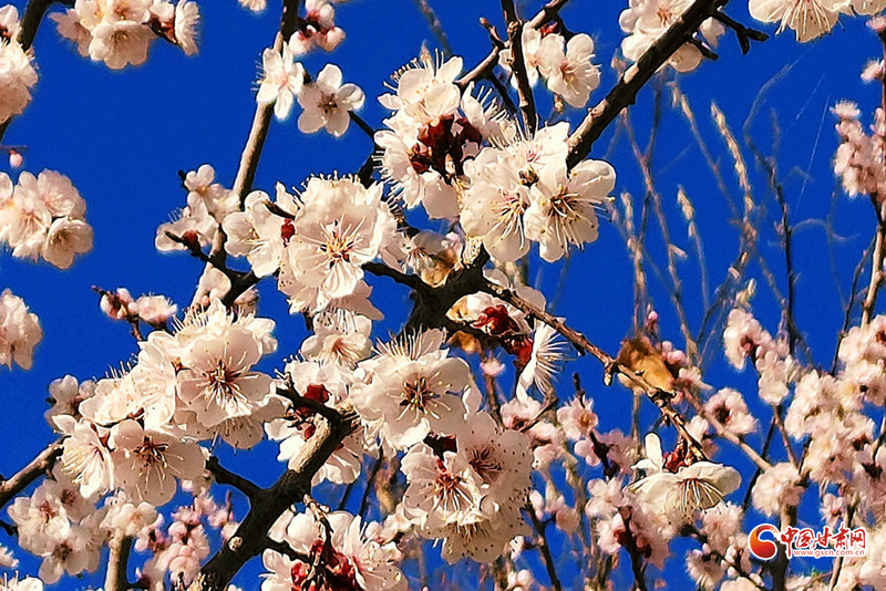 4月13日,臨澤流沙河景區(qū)杏花盛開,游客紛至沓來。在林果示范園中,紅蕾粉瓣的杏花香氣四溢,與景區(qū)建筑和自然景觀相映成趣。湖面與祁連山雪山相互映襯,清澈湖水倒映雪山,波光粼粼。雪山潔白、杏花粉嫩、丹霞山多彩,共同繪就絕美春日畫卷。