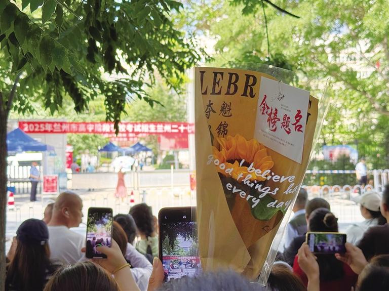 除了親人送考之外,老師們也來助陣了。在蘭州一中校門口,蘭州志成中學(xué)的老師們還在不斷叮囑考生們要細致,也預(yù)祝他們考出好成績。