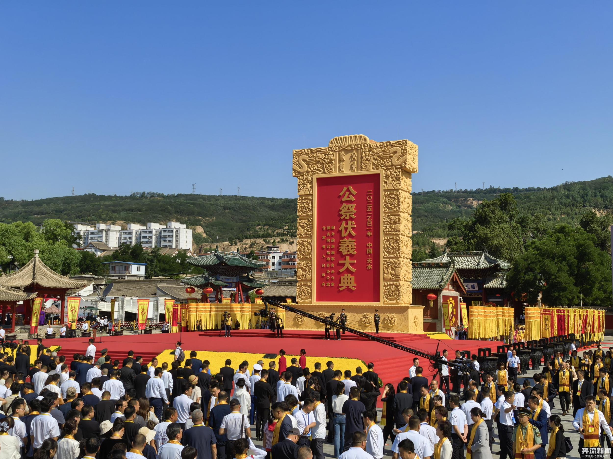 6月21日,夏至,甘肅天水,整座城沉浸在莊重而神圣的氛圍中。當(dāng)日,2025(乙巳)年公祭中華人文始祖伏羲大典在天水伏羲廟盛大舉行。人們從四面八方匯聚于此,共赴這場跨越千年的文化之約,向人文始祖伏羲致以最崇高的敬意。與此同時(shí),寶島臺(tái)灣也同步舉行海峽兩岸共祭中華人文始祖伏羲典禮。