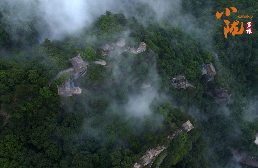 雨后初霽,云霧自幽谷翻涌升騰,如浪濤席卷峰巒,遠處山影在云濤中若隱若現(xiàn),恍若蓬萊仙島。霧氣氤氳間,林海、亭閣若隱若現(xiàn),恰似一幅流動的水墨丹青。