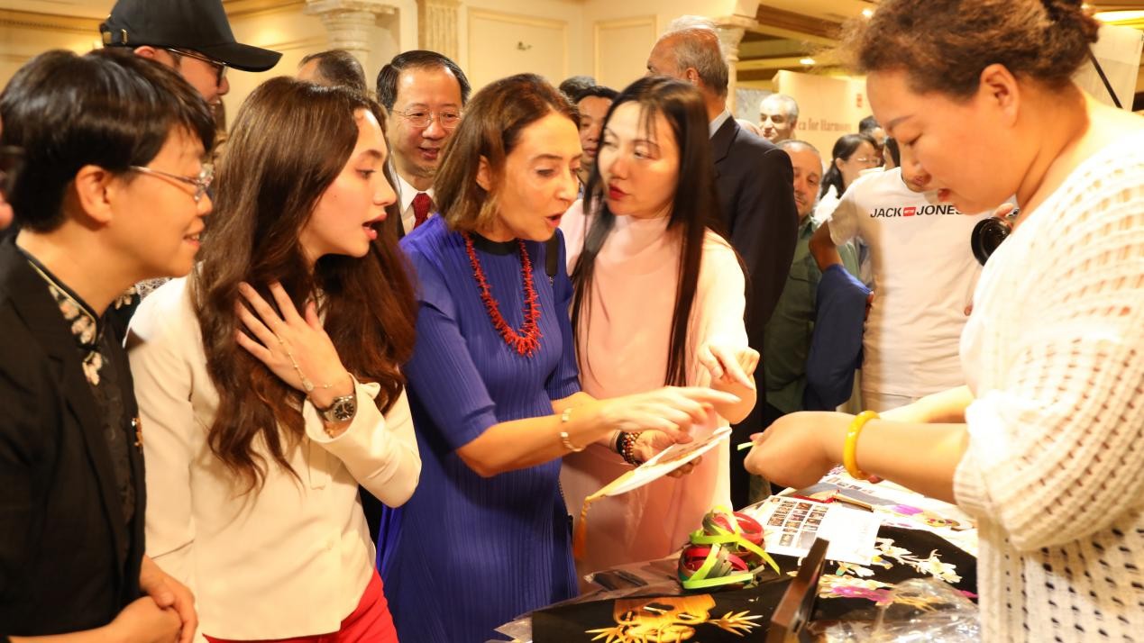 在今年5月18日“茶和天下——甘肅文旅推廣”安曼現(xiàn)場,唐彩萍現(xiàn)場制作的麥桿畫以獨(dú)特魅力驚艷全場,約旦王妃和加莉拉公主被其精湛的工藝深深吸引,親自上手體驗(yàn)后豎起大拇指稱她是“奇人”。今年6月在“根與魂——甘肅省非遺澳門展演會”上,唐彩萍制作的麥桿畫《和平鴿》《中國龍》贏得與會人士的高度贊賞,澳門特別行政區(qū)政府文化局局長梁惠敏稱贊其“不同凡響,值得傳承發(fā)揚(yáng)”,并當(dāng)場邀請?zhí)撇势紴榘拈T小朋友傳授麥桿畫的制作方法。