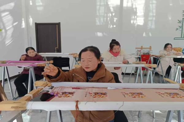 從硬片繡到架上刺繡,從鞋墊、枕頭到布藝首飾,十幾年間,刺繡讓袁紅艷為家庭帶去收入,更重塑了她自身。“這里有很多繡娘,大家互相鼓勵,我變得愛說愛笑了。”她給已經(jīng)工作的孩子繡實(shí)用品,參加比賽獲獎,獲得個人成就。“現(xiàn)在能幫襯家庭,感覺活得更有尊嚴(yán)了。”她建議無法外出務(wù)工的群體學(xué)習(xí)刺繡:“利用閑暇時間,既能增收,又能找到價值。”一根針,讓她從邊緣走向舞臺中央,一根線,讓她從“自卑”走向“自豪”。