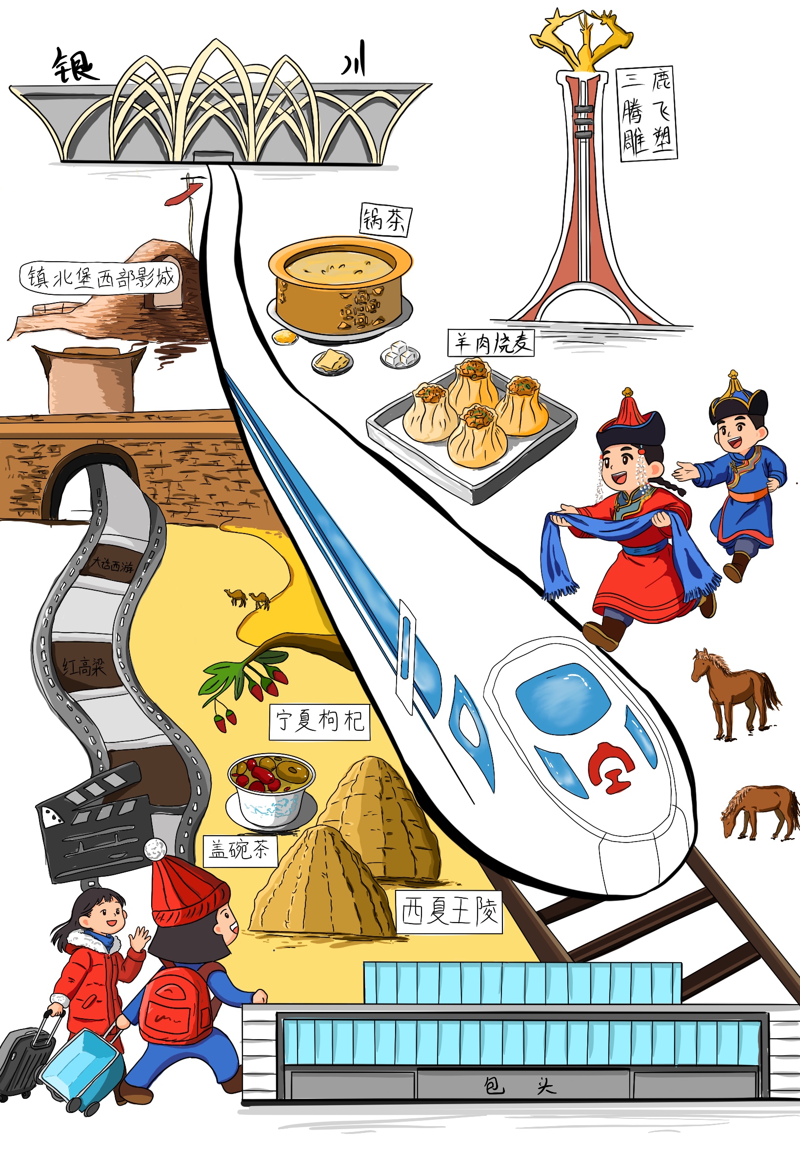 不負山河浩蕩,不負星河燦爛。這條貫穿西北的鋼鐵巨龍,不僅是一條便民出行的快捷線,更是助力發(fā)展的經(jīng)濟線、促進交流的文化線。無論是由此帶來的沿線旅游、產(chǎn)業(yè)、就業(yè)的發(fā)展,還是鐵路企業(yè)自身建設(shè),都將呈現(xiàn)出勃勃生機,為西北大地帶來更多的發(fā)展活力與無限可能。面向“十五五”,包銀高鐵必將推動沿線經(jīng)濟社會發(fā)展駛?cè)?ldquo;快車道”,在新征程上續(xù)寫更輝煌的篇章。(文字:陳浩媛  漫畫:李雨晴,朱雪菲)