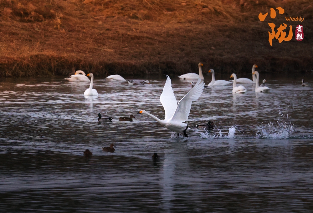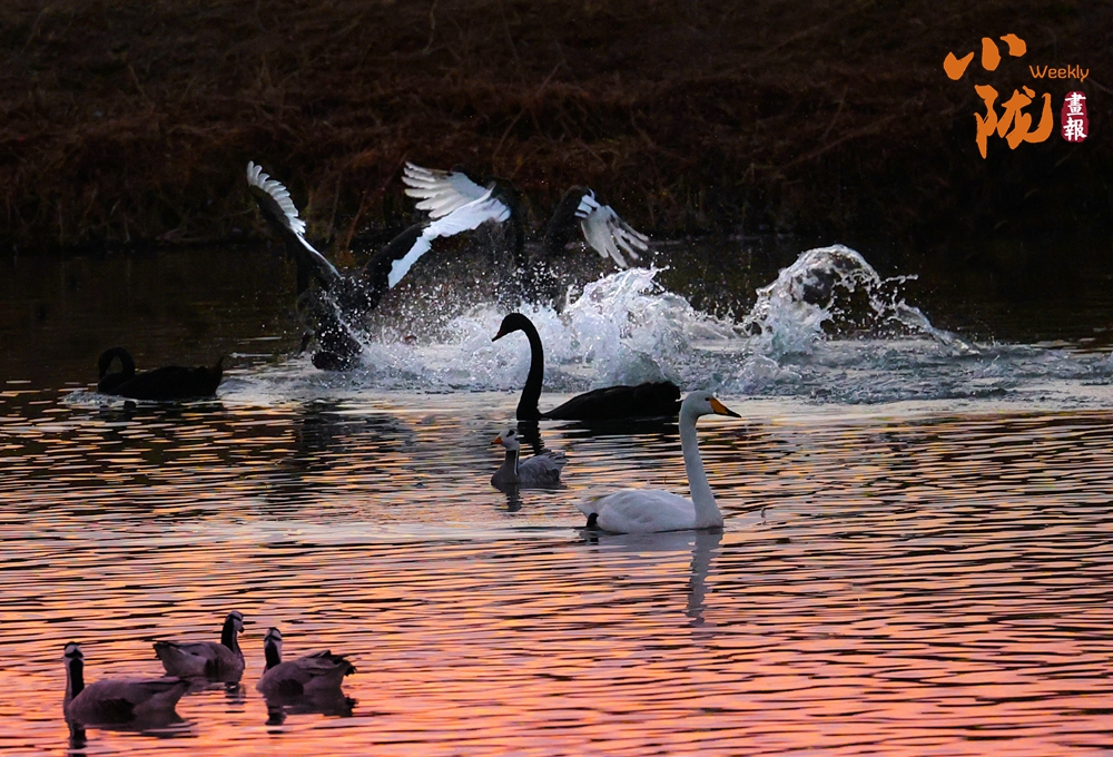 這里聚集了天鵝、赤麻鴨、灰雁等多種水鳥,它們在黃昏里愜意地游弋,或扎進水里捕魚,或相互追逐戲水的畫面,既震撼又溫柔,成為攝影愛好者和游人爭相追逐的“冬日奇景”。