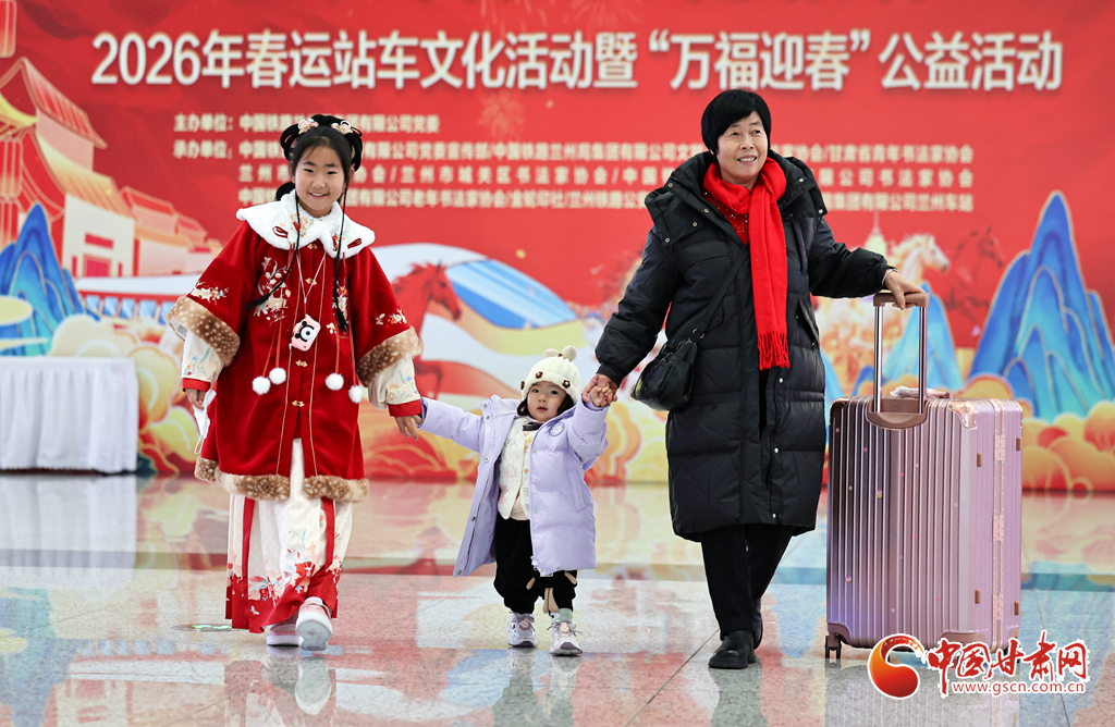 2月2日,2026年鐵路春運(yùn)大幕正式拉開。中國鐵路蘭州局集團(tuán)有限公司在蘭州西站候車廳開展“文明出行 文化相伴”特色暖心活動,邀請書法愛好者揮毫寫春聯(lián)、贈“福”字,同時奉上精彩文藝表演,為旅客的回家路增添濃濃年味與溫情。