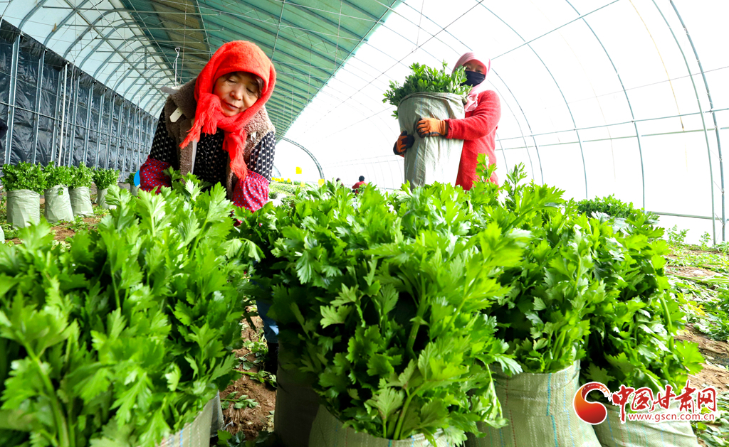 1月29日,臨澤縣鴨暖鎮(zhèn)古寨村的農(nóng)業(yè)大棚內(nèi),芹菜正值采收季。種植戶們忙著收割、打捆、裝箱,準備將這批新鮮蔬菜發(fā)往新疆、內(nèi)蒙古等地,保障冬季市場供應。