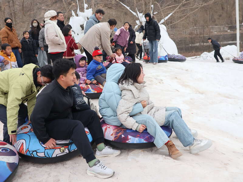 “冰雪之約,暢游遮陽”冰雪嘉年華現(xiàn)場,成年游客重拾童趣。中青報(bào)·中青網(wǎng)記者 王豪/攝