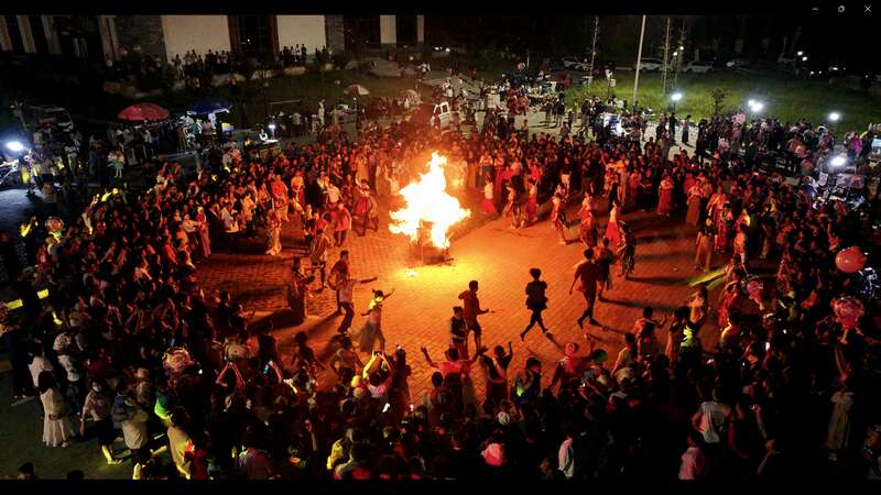2025年7月,西北師范大學(xué)師生實(shí)踐團(tuán)在新聯(lián)村舉辦篝火晚會。受訪者供圖