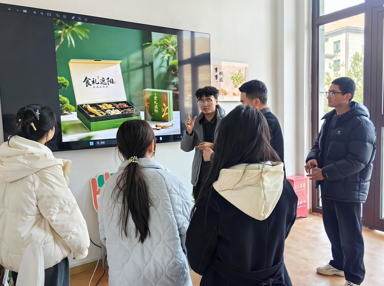 “食禮遮陽”宣傳小分隊(duì)成員討論藥材包裝細(xì)節(jié)。中青報(bào)·中青網(wǎng)記者 王豪/攝