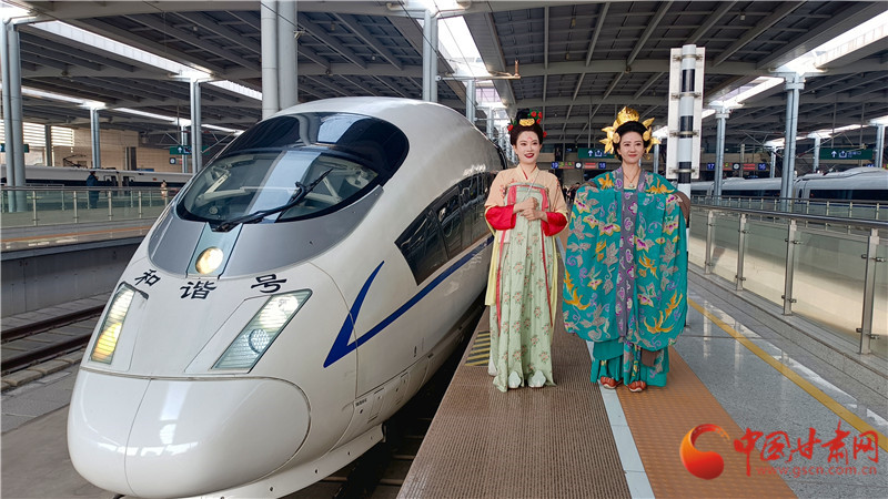 這趟列車(chē),是敦煌研究院、甘肅省博物館、甘肅簡(jiǎn)牘博物館、蘭州市博物館、天水市博物館、武威市博物館、平?jīng)鍪胁┪镳^、臨夏州彩陶館(州博物館)、和政古動(dòng)物化石博物館九家國(guó)家一級(jí)博物館聯(lián)袂打造的“高鐵流動(dòng)博物館”。