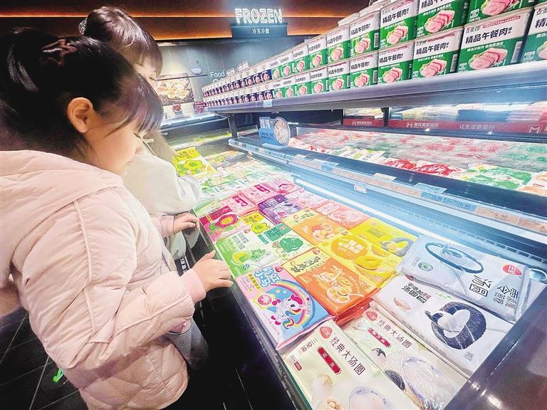市民趙女士精心挑選果味元宵:“上次購買的這款爆心啵啵元宵口感清爽細(xì)膩,老人孩子都愛吃,我們還跟著教程做了不同吃法,這不馬上快元宵節(jié)又逢開學(xué),特意多囤一些。”市民李女士帶著孩子選購了一款“馬到成功”奧巧味元宵。“往年多吃黑芝麻、水果味的元宵,今年想嘗點(diǎn)新意,這款價格實(shí)惠,孩子也喜歡。”李女士說。