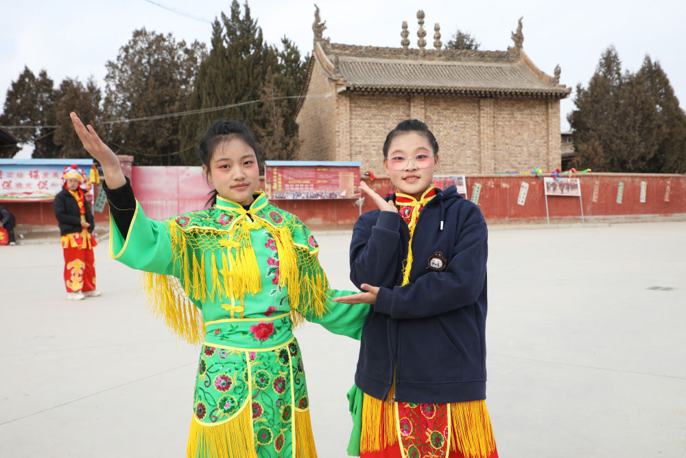 王欣怡、王欣語姐妹倆自小學習舞蹈,看著社火長大的她們已連續(xù)兩年參加當?shù)厣缁鸨硌荨?ldquo;社火表演熱鬧有趣,就像一種角色扮演,讓我們對傳統(tǒng)文化有了直觀的感受。”王欣怡說。