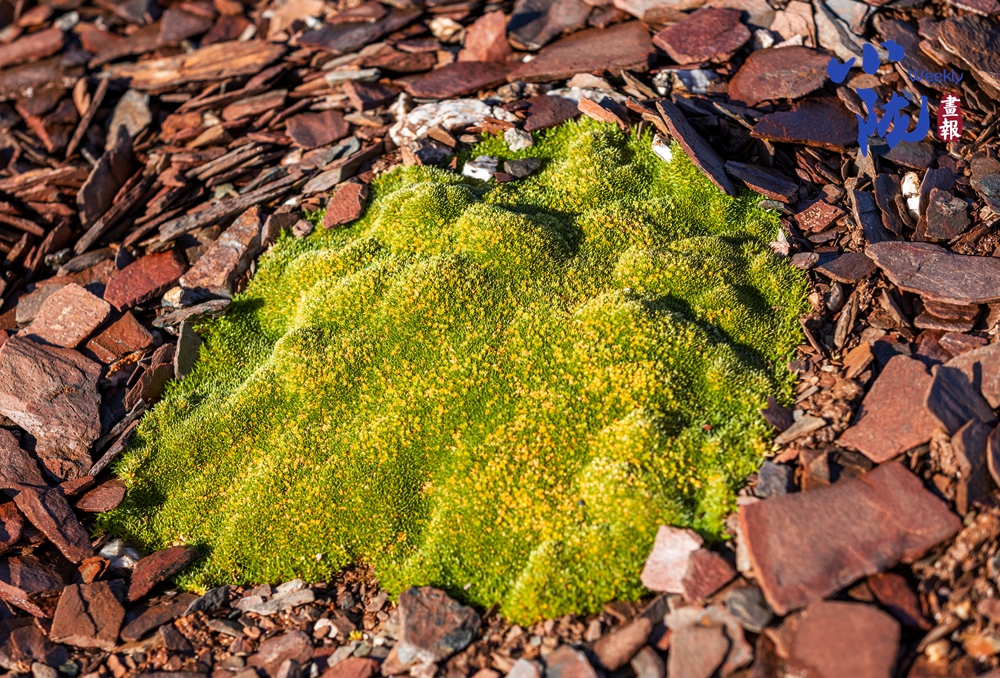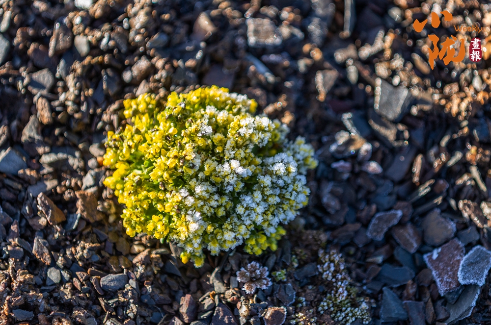 抱莖葶藶,屬于十字花科葶藶屬的墊狀高山植物。它呈緊湊的團(tuán)塊狀,葉片密集,表面覆有白色絨毛,頂端開有細(xì)碎的黃色小花,生長在碎石環(huán)境中,這種形態(tài)能幫助它適應(yīng)高海拔的低溫、強(qiáng)風(fēng)與強(qiáng)紫外線環(huán)境,減少水分流失。