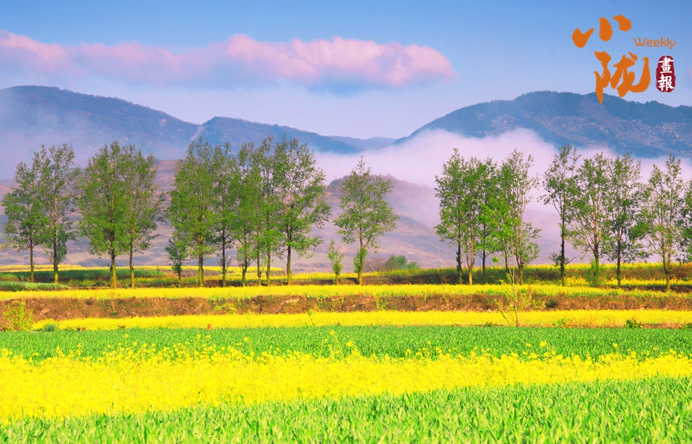 澄澈的藍(lán)天銜著粉紫流云,眼前是望不到頭的油菜花田,明黃的花浪在風(fēng)里翻涌,田埂邊的樹(shù)木抽出嫩綠新芽,春日的鮮活與靈動(dòng),全在這山野間漾開(kāi)。